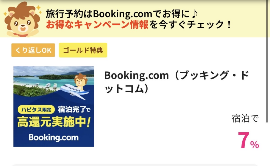 これを予約する際も、ハピタスを経由することによってポイントがたまります!